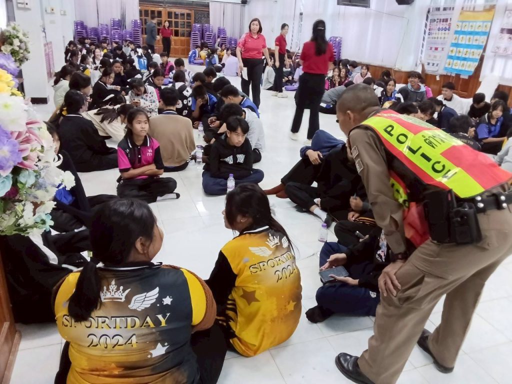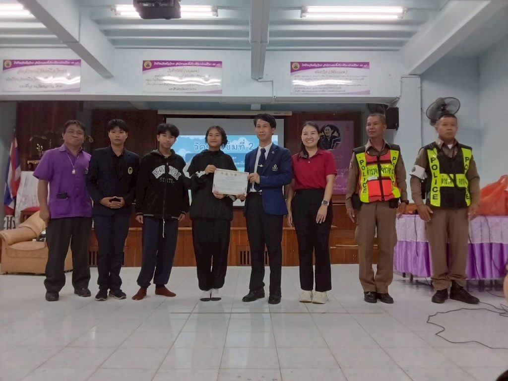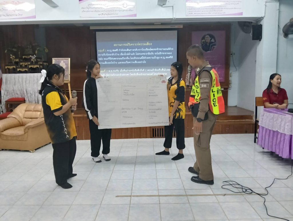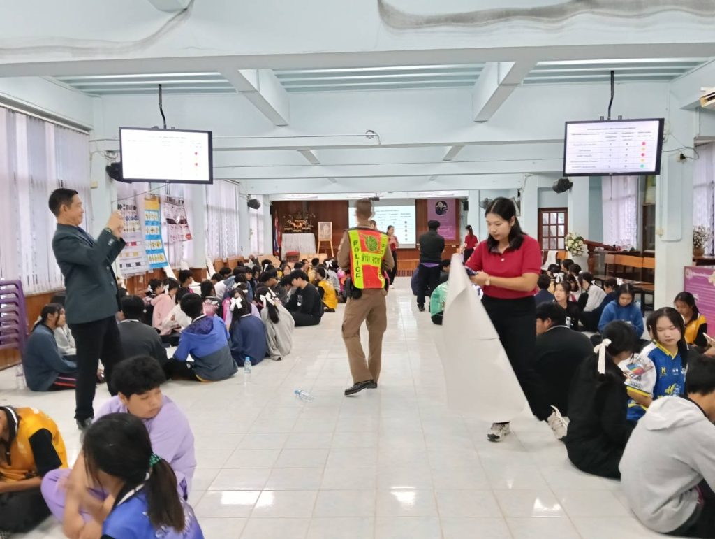 17ก.ค.68 เวลา 09.00- 16.00 น.โดยการอำนวยการของ ว่าที่พ.ต.อ.อรุณสวัสดิ์ ยอดกระโทก ผกก.สภ.วังเหนือ พ.ต.ท.สมโพธิ์ สอิ้งแก้ว รอง.ผกก.ป. ว่าที่พ.ต.ต.สุรพงษ์ ขัดสีใส สวป.มอบหมายให้ ร.ต.ต.เกียรติ บัวตอง สว.(ป.) ,ด.ต.สมชาย อุบลบาล ผบ.หมู่(ป.) เข้าร่วมบรรยาย โครงการอบรมให้ความรู้วัคซีนจราจร ทัษะคิด การเอาชีวิตรอดบนท้องถนน (TSY Program) แก่นักเรียนชั้น ม.2-ม.3 จำนวน 150 คน ณ โรงเรียนวังเหนือวิทย