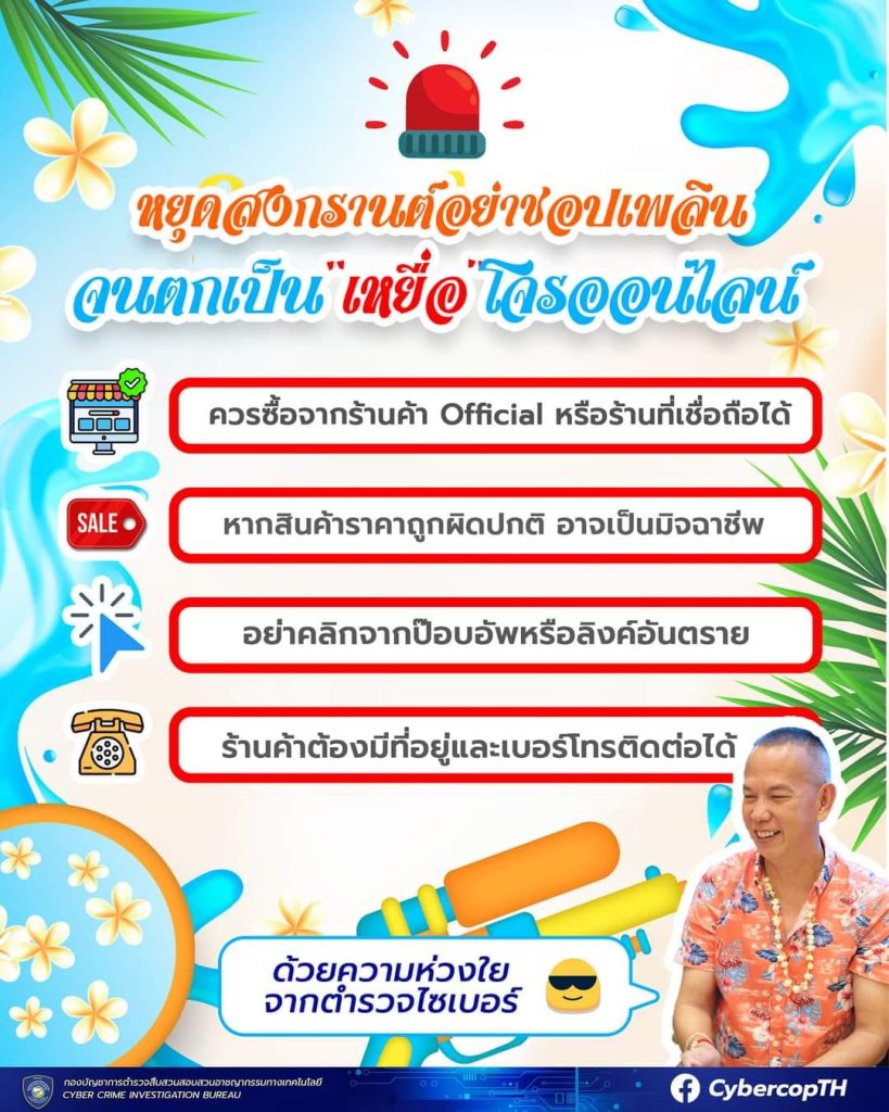 📢 ตำรวจไซเบอร์เตือนภัย หยุดสงกรานต์อย่าชอปเพลิน จนตกเป็นเหยื่อโจรออนไลน์ ‼️